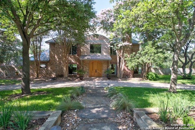 Warm family home with large guest house in Hollywood Park! PROPERTY: corner lot, lush landscaping, towering trees, a Keith Zars pool, hot tub, and extensive other amenities. MAIN HOUSE: bright entry with a chandelier and soaring ceilings, formal living room, family room, eat-in kitchen, sunny breakfast room, and separate dining room. The large screened porch is a stunner - 1000 sqft with outdoor seating and dining areas. The chef's kitchen has commercial-level features such as a Wolf double oven, warming drawer, kitchen island and Sub Zero refrigerator. Generous primary suite is downstairs, with large walk-in closet and access door to outside. An office with large windows and bookcases overlooks the back yard. Upstairs are four bedrooms, two bathrooms, and a loft. The detached garage is for three cars, plus storage. ADDITIONAL DWELLING: Roughly 1600 square foot guest house, with large bedroom, kitchen, den, living room, dining, breakfast area, bathroom, and closets, one of which accommodates laundry, making the guest house perfect for independent living. The guest house also has a carport and a separate drive. There is a circular drive for guests in front of the main home. Well maintained property and homes, on just under an acre and a half, in town, convenient to 281, 1604, and 410. The Hollywood Park Recreation area offers sports courts, a pool, a community center, play ground, splash pad, and tennis courts.