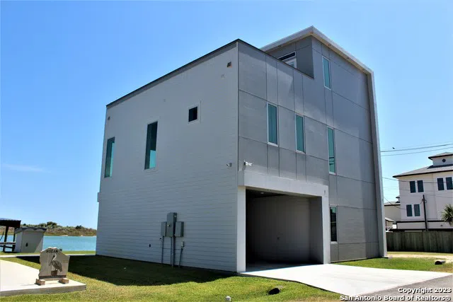 Welcome to your coastal paradise! Nestled within a gated community, this waterfront retreat offers an unparalleled living experience with over 100ft of waterfront. Completed in 2022, this meticulously crafted 3-bedroom, 3-bathroom home is a masterpiece of modern architecture built with insulated concrete forms for energy efficiency and durability, boasting an industrial-themed decor that perfectly complements the coastal surroundings. With shiek finishes & designer fixtures, this open floorplan effortlessly blends indoor and outdoor living spaces. Lrg windows frame picturesque water vistas, casting a mesmerizing glow throughout the interior and the kitchen is sure to inspire your culinary creativity with sleek KitchenAid appliances. This waterfront gem offers direct access to the intercoastal waterway, equipped with 3 boat lifts, deck and lighted pier. Temp controlled storeroom w/shower, interior cargo lift, wtrwell and 58' of bulkhead finishes up the perfect Coastal Getaway. Short term rental allowed.
