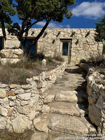 This is a great property available in the hill country minutes from Boerne and San Antonio. Drive through the automatic cedar planked privacy gate to find an impressive approach to the warehouse. Unique one of a kind crafted warehouse is carefully finished to blend with the surroundings offering a bedroom, shower, and bathroom. The main home sits atop the middle location for its development and features 3 bedrooms, 1 full bath, dining/ family room & kitchen. There is an open workshop next door also housing the water treatment system. There are several water storage tanks replenished by rainfall runoff. A water well could be drilled according to the Cow Creek Water District. The structure shows mold intrusion due to poor drainage planning. A clear building site is above the structure location affording an even more impressive view.