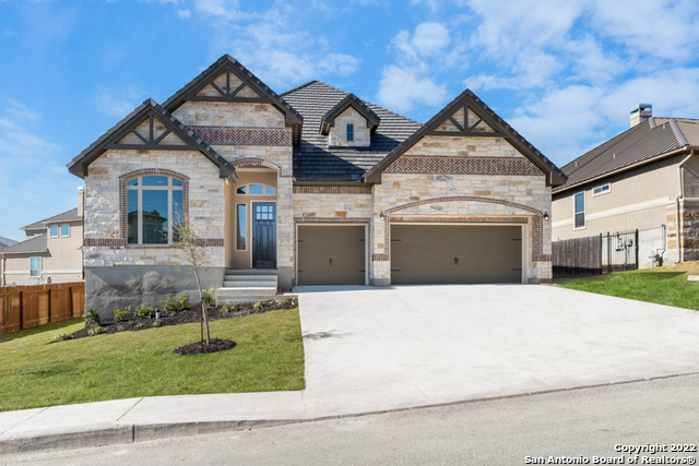 This elegant 4 bedrooms 3 bath 2442 square foot 1 story design features 8ft exterior and interior doors with 12' ceilings in main hallways and common areas, a gourmet kitchen with deluxe kitchen cabinets & large arched granite island accented by stainless steel gas built-in appliances. The large master is accompanied by a large walk-in closet and a fully enclosed master shower with a freestanding tub. The kitchen extends into the large open family room with a gas fireplace. Beautiful LVP flooring leads out to a covered patio and large yard. An 8 ft Craftsman wood door greets you at the entry. This home has an elegant brick, stone, and heavy timber front design. The 3-car garage, full yard sprinkler system, Smart Home automation system and much more make the Teepleton a great home for any family!